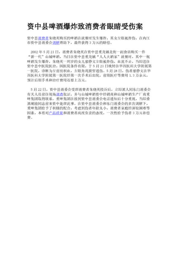 資中縣啤酒爆炸致消費者眼睛受傷案