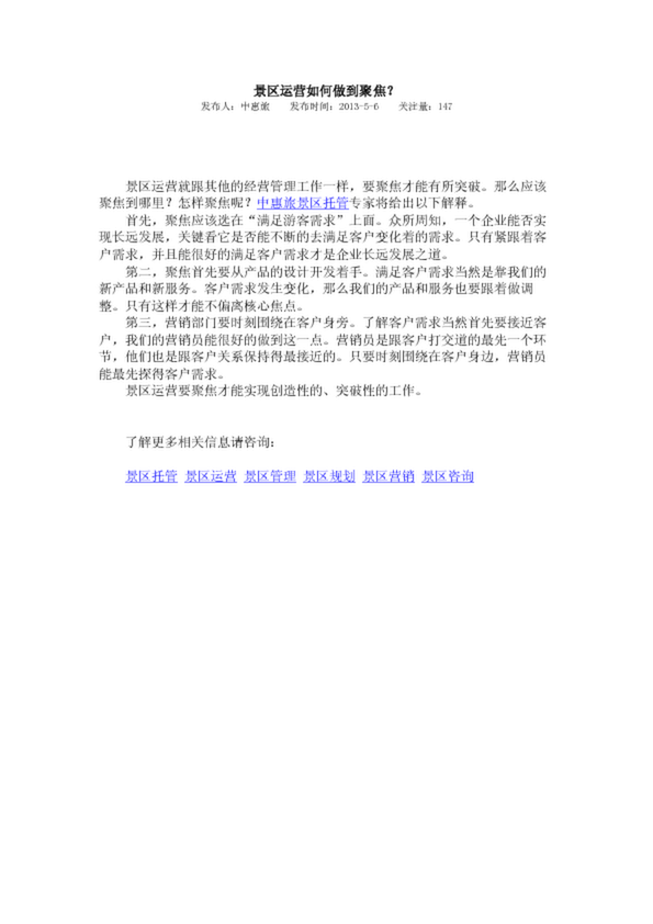 景區運營如何做到聚焦?